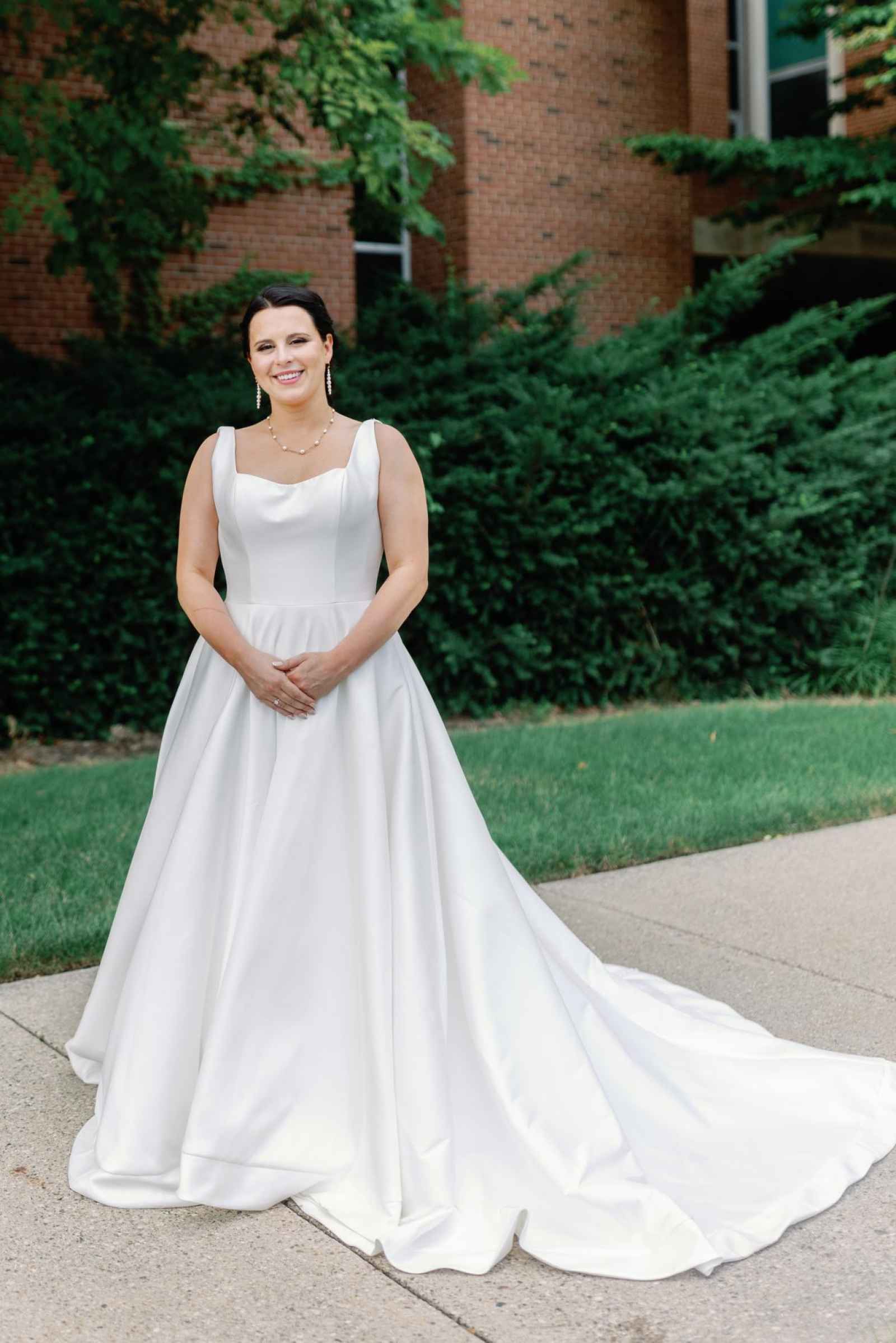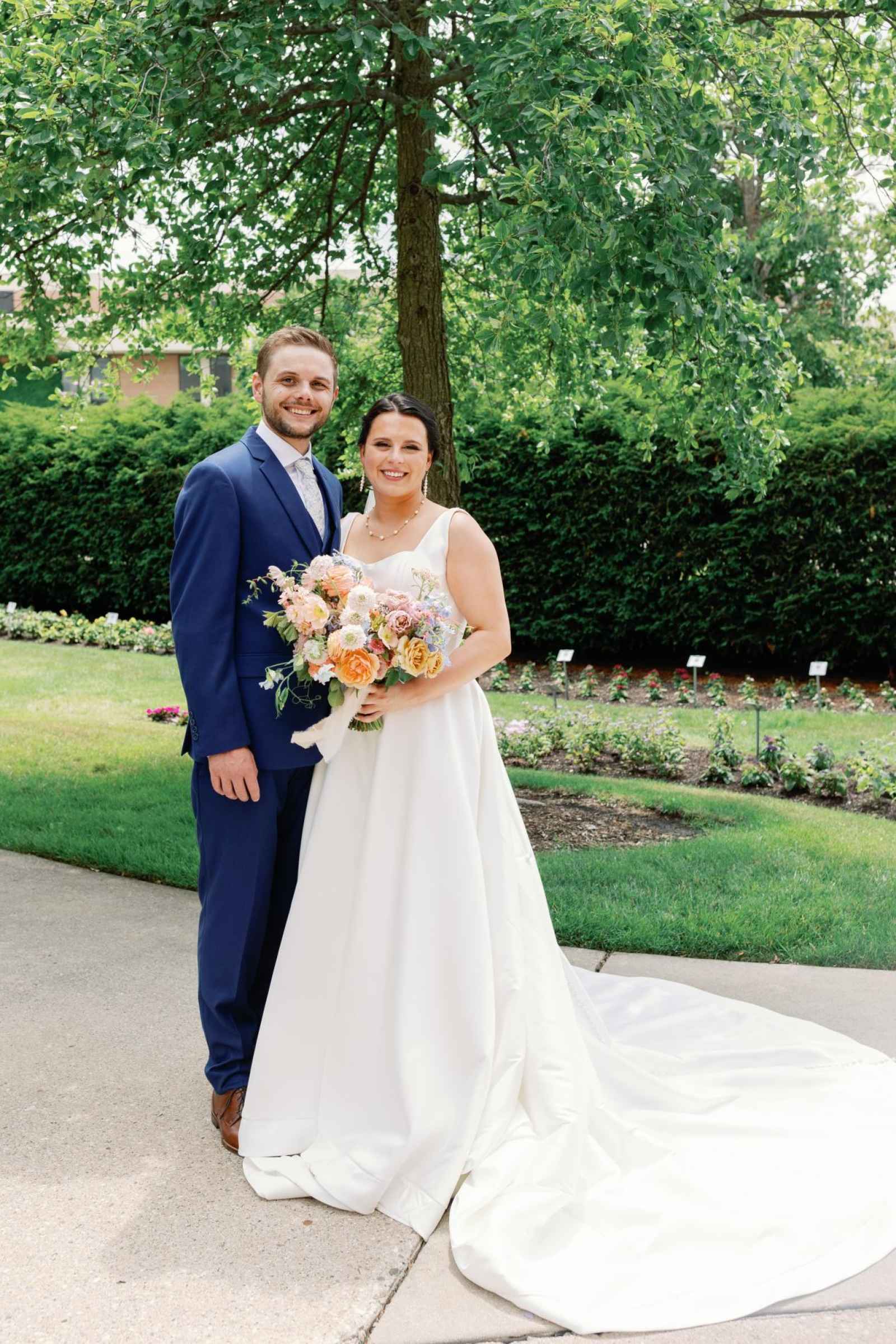 Kim looked absolutely stunning in her Justin Alexander gown from Becker's Bridal! We love how the timeless satin design contrasted with their whimsical, garden celebration.