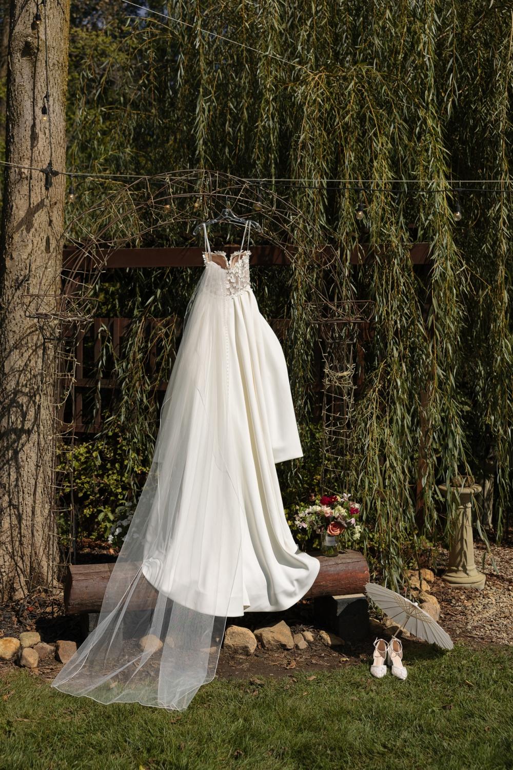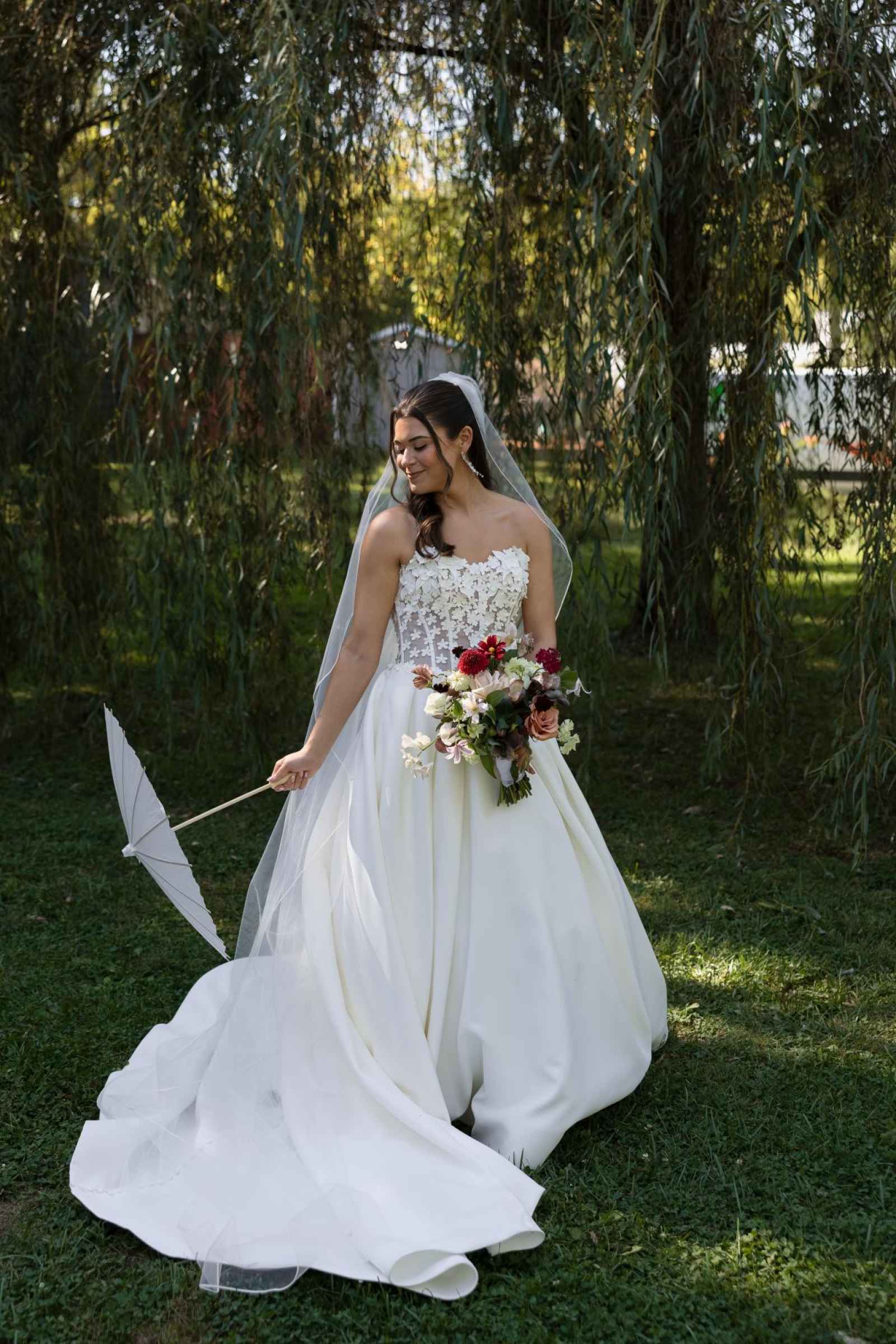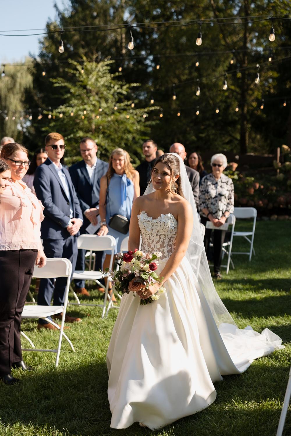 Dress shopping was the part of planning that was both exciting and a little nerve-wracking for Destina. She found a bridal shop and tried on a few dresses, but just didn't feel quite right about any of them. Destina admits, "I tried on many different styles and was surprised by what I liked and didn’t like. I left feeling encouraged but not quite like I had found 'the one.'" She ended up going home after her initial fitting and finding styles she liked online. There was one she kept coming back to so she asked the bridal shop if they could order it. When she tried it on, she knew instantly that she had found her dress!