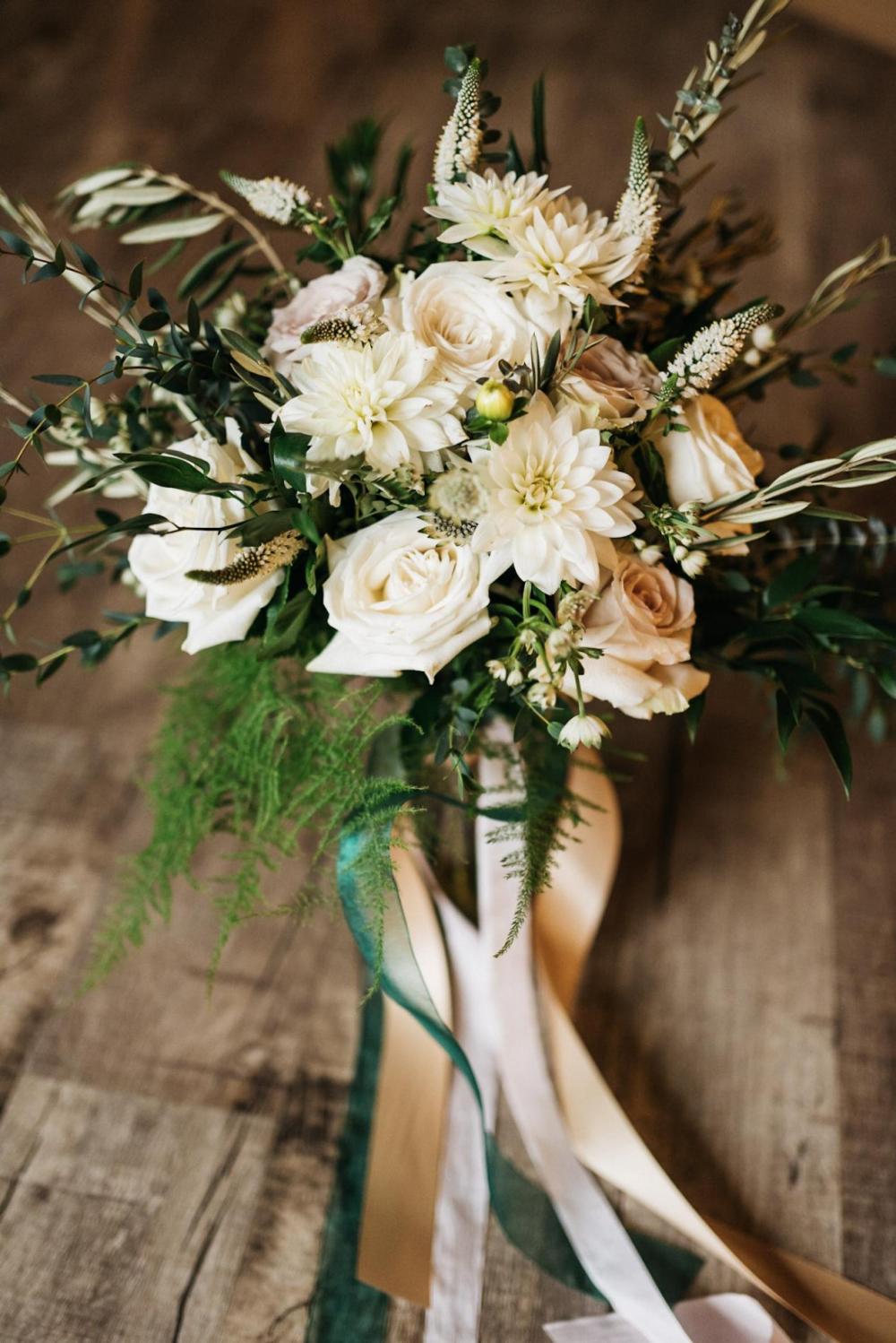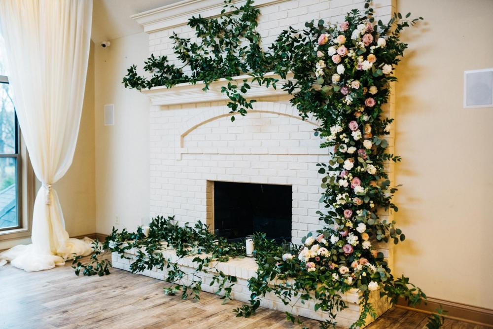 One thing unique to this couple was their love for lush greenery. Rachel gushes, “We loved the fireplace floral installation we got married in front of!”