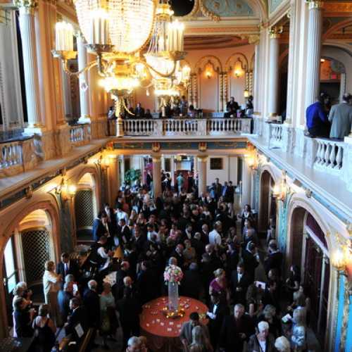 The historic Morris Performing Arts Center 2,500 seat theater on two levels, stage, and state-of-the-art sound and lighting. The stage can accommodate groups up to 175. The Morris Grand Lobby features beautiful gold-leafed domed ceiling and large windows overlooking the Jon R. Hunt Plaza. The space is perfect for cocktail receptions for up to 500 or banquet events up to 80.